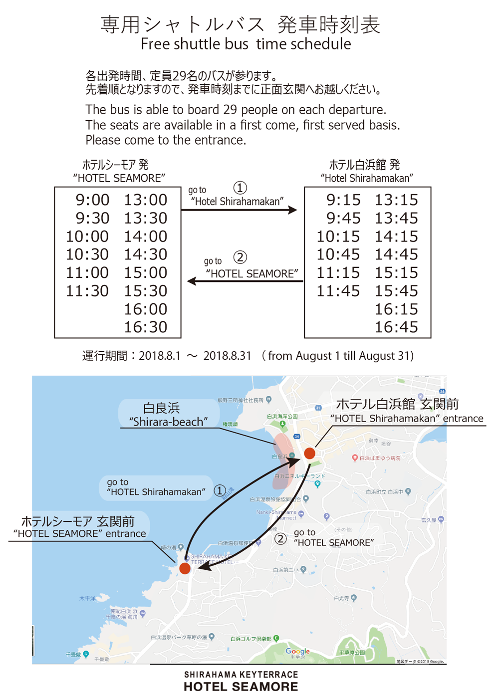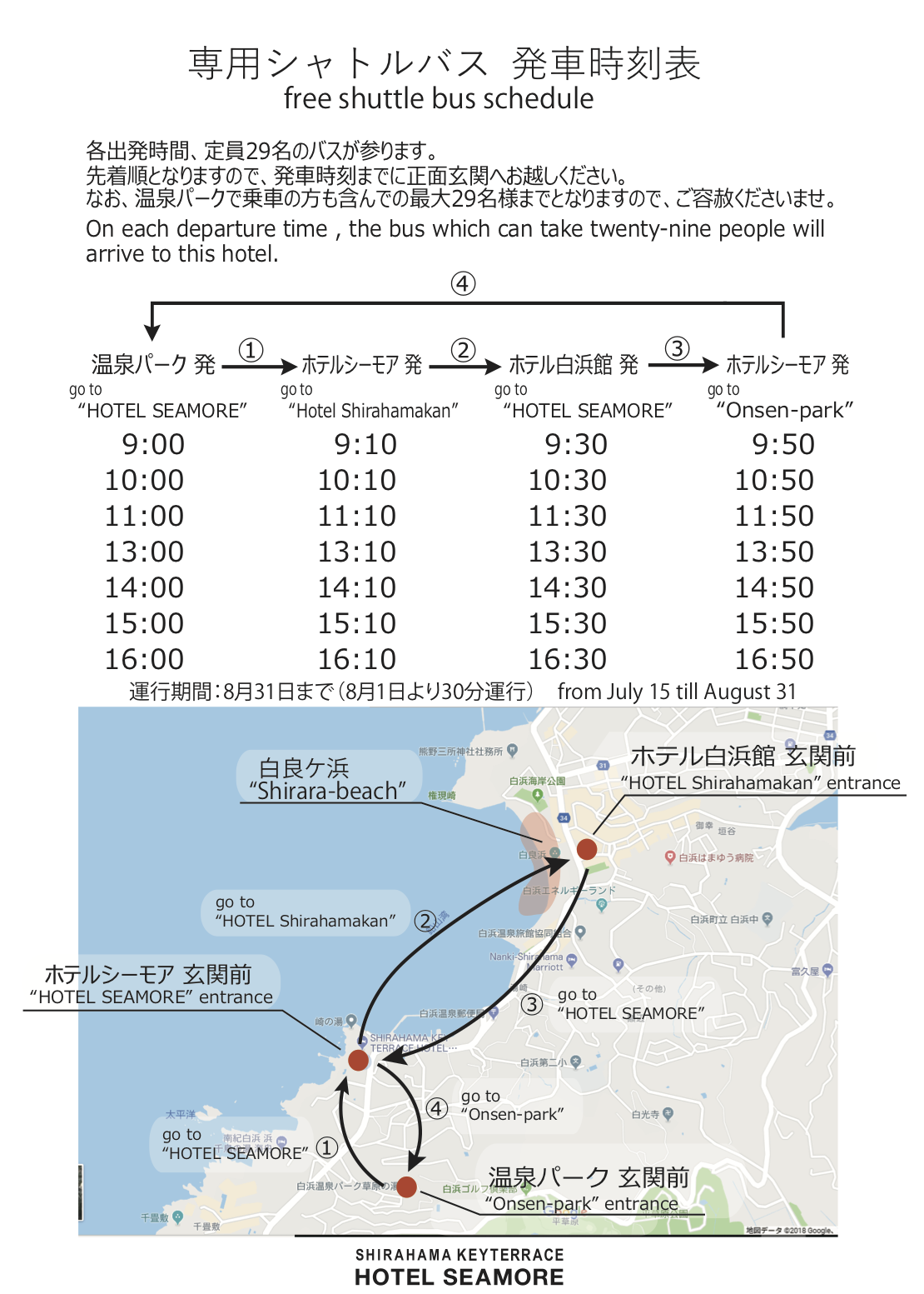 無料周遊シャトルバスのご案内7月31日迄ご利用のお客様