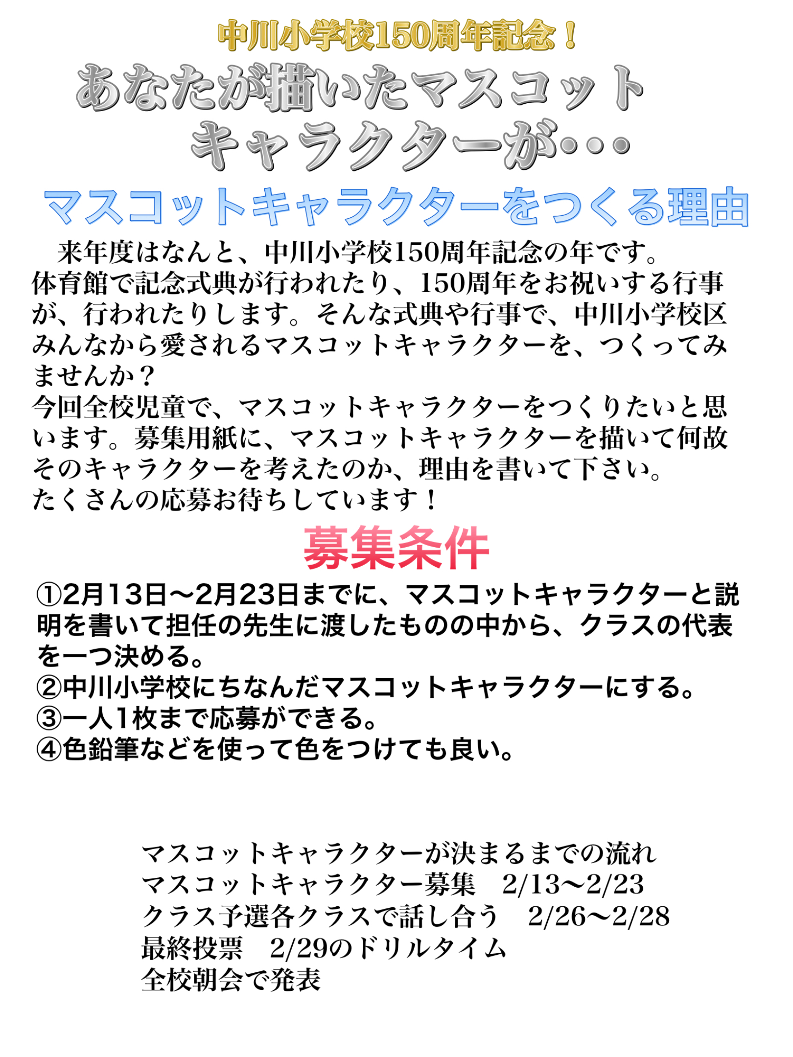 市立中川小学校市立中川小学校(青倉駅:小学校)の2024年2月8日のホームページ更新情報です