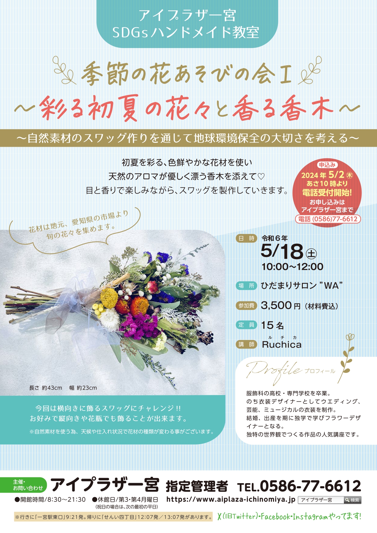 季節の花あそびの会Ⅰ ~彩る初夏の花々と香る香木~ SDGsハンドメイド工作教室