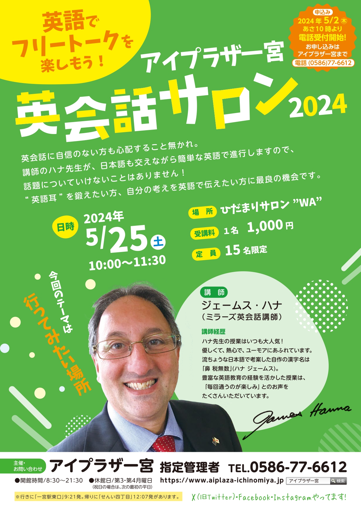 アイプラザ一宮 英会話サロン2024 英語でフリートークを楽しもう!