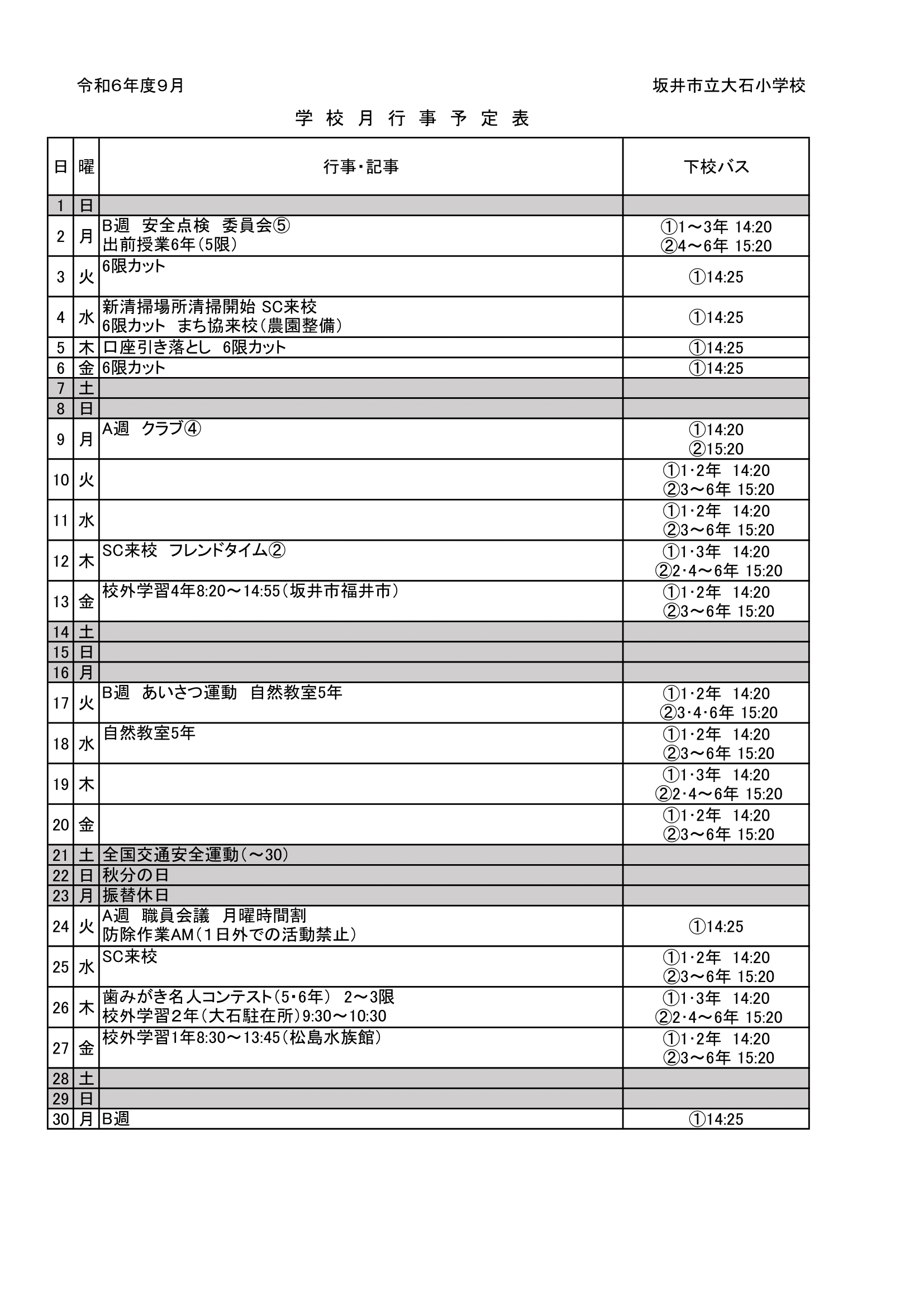 9月行事予定
