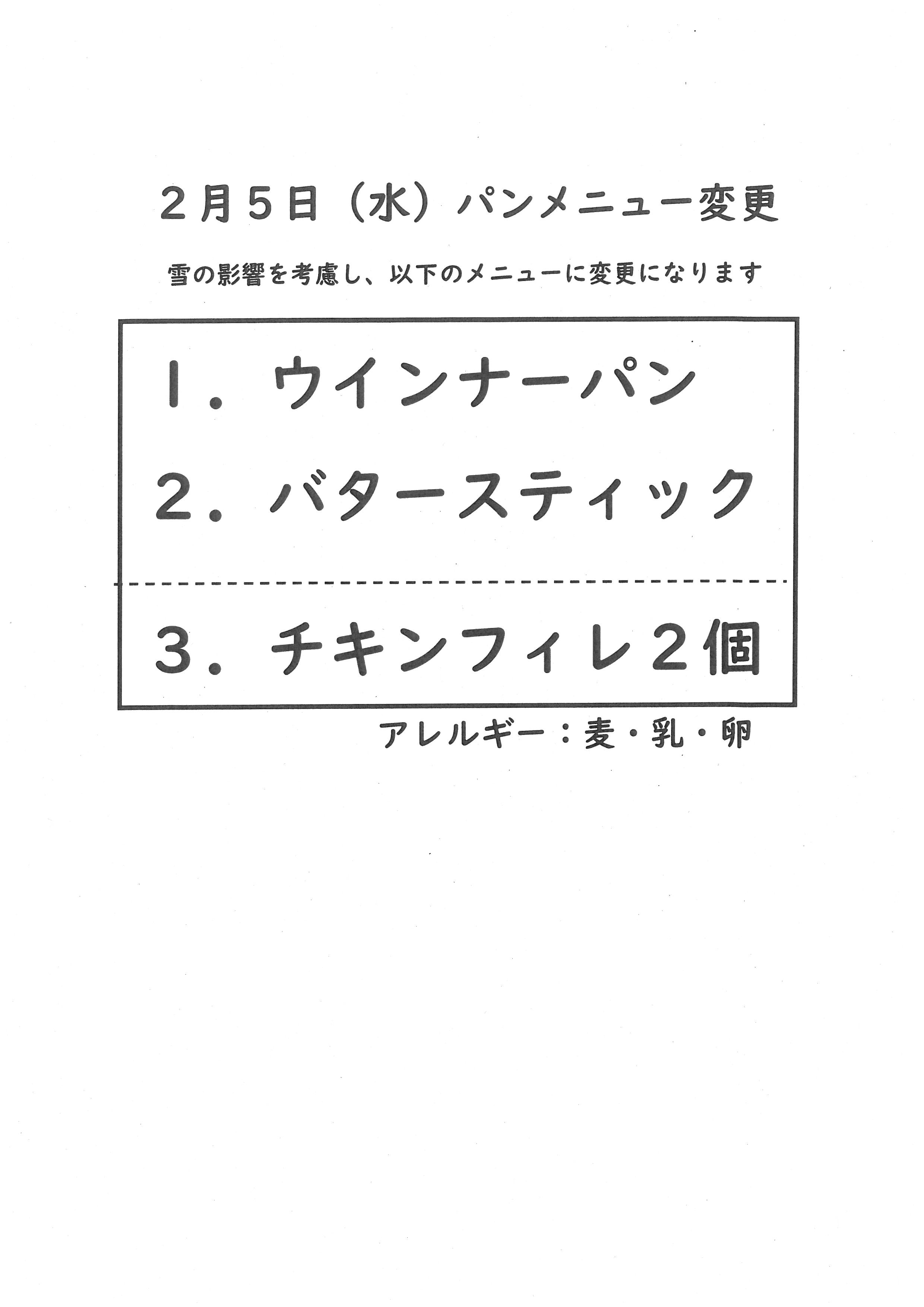 明日、2/5(水)パンメニュー変更