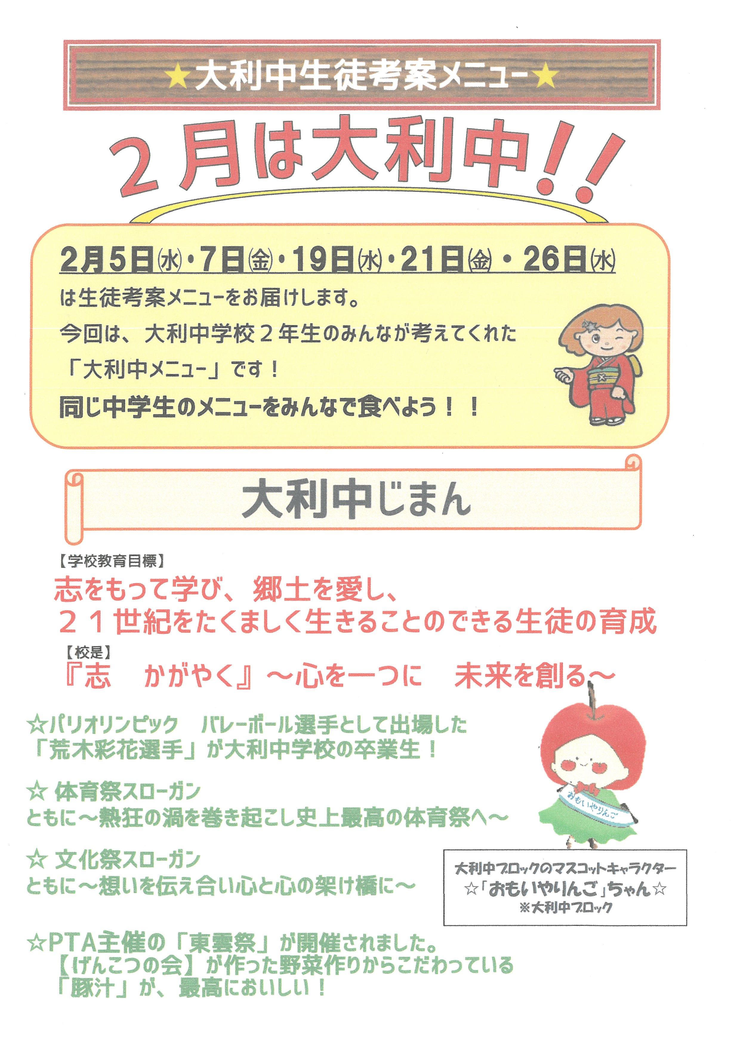 市立大利中学校 のホームページ更新情報